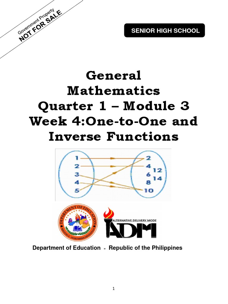 Welcome to the Grade 11 General Mathematics Self-Learning Module SLM on Concepts of Functions. Learners Material STRATEGIC INTERVENTION MATERIAL IN GENERAL MATHEMATICS Basa Pilipinas Lingguhang Gabay ng Guro sa Filipino para sa Multigrade na Klase Baitang 1 at 2 Yunit 2 Odd Cycle Science and Math Equipment Database Grades 1-12 Basa Pilipinas Lingguhang Gabay ng Guro sa Filipino para sa Multigrade na Klase Baitang 1 at 2. K to 12 Senior High School Core Curriculum General Mathematics May 2016 Page 5 of 6 Code Book Legend Sample.